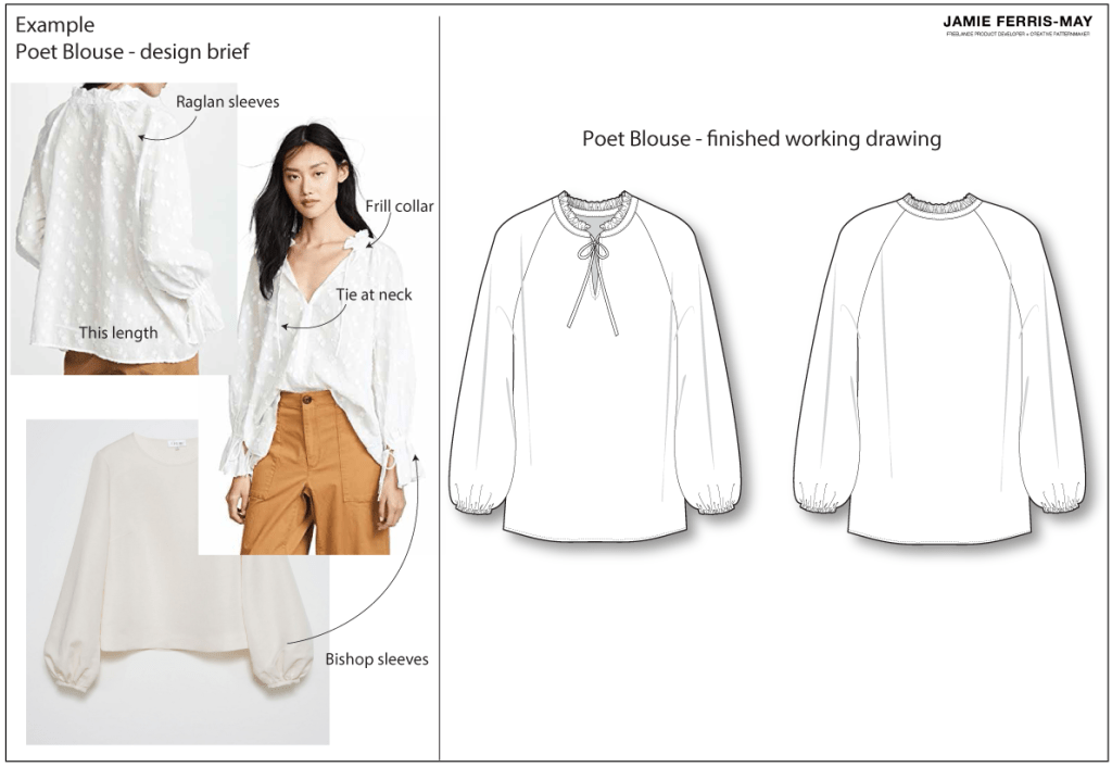 Often, a client has a pretty good idea of the style of garment they’d like to produce but may need assistance with putting the design together in a commercial way. In this case, Jamie can interpret ideas through client photos and descriptions to come up with a finished and highly producible design for the market intended.