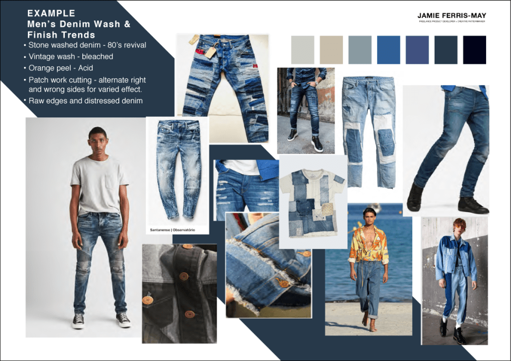 Identifying brand direction and understanding market position is an important part of the design process. Jamie can conduct research and offer direction appropriate to the market position. Having access to forecasting resources and conducting online and retail research, Jamie can clearly identify key trends and up-to-date garment details to enable targeted product design and development.