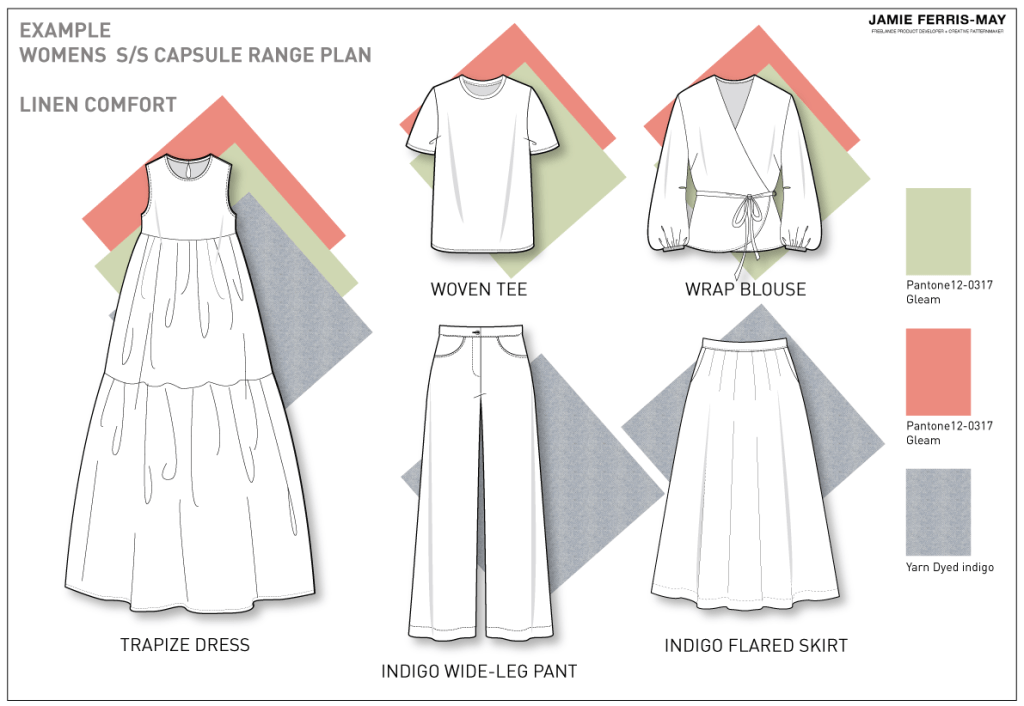 Be it a seasonal collection or separates intended to be released at regular intervals throughout the year, planning is required. Range planning is a collaborative process with the client to interpret the brand vision, taking into consideration anticipated budgets and price points.
